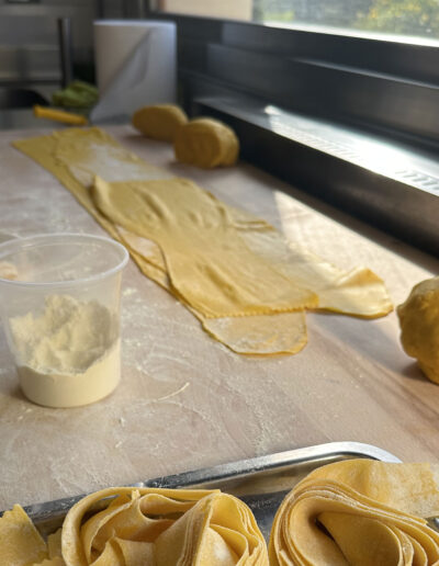 Al termine della lezione, potrai gustare le tue creazioni in un’atmosfera conviviale e rilassata, accompagnate da un buon calice di vino locale.